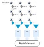 Changes to the readout circuitry allow the new CMOS sensor to achieve higher speed with low readout noise. Unlike the conventional CMOS image sensors, the new designs have parallel readout channels so that as many as 1920 channels are read out in parallel. A correlated double sampling (CDS) circuit is at the output of each channel, followed by an analog-to-digital (A/D) converter (Figure 2). With the massive parallel readout, the signal processing circuits can limit their bandwidth to less than 1 MHz and still attain a fast frame rate of 45 frames/s. Lowering the amplifier bandwidth reduces the readout noise because the contributions from the higher bandwidths are eliminated. Combining the reduced bandwidth, the correlated double sampling, and an A/D converter dedicated to each output results in readout noise of only a few electrons per second without any need to sacrifice the frame rate.