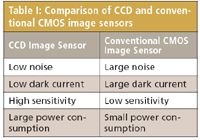 Table I: Comparison of CCD and conventional CMOS image sensors