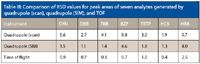 Table III shows a comparison of percent relative standard deviation (RSD) values for 10 replicate injections of a standard containing octafluoronaphthalene (OFN), dibromobenzene (DBB), tribromobenzene (TBB), benzophenone (BZP), tetrabromothiophene (TBTP), hexachlorobenzene (HCB), and hexabromobenzene (HBB). The values represent the RSD for peak areas based upon a single quantitation mass for each analyte. The results from 10 replicate injections performed on a quadrupole operating in scan and SIM modes were compared to those generated on a TOF system, which is always collecting full-range mass spectra. These results show that a quadrupole instrument's reproducibility suffers when operating in scan mode rather than SIM. This is one of the reasons SIM is most often chosen for quantitative analyses. Unfortunately, this necessitates samples with nontargeted compounds to be analyzed twice: once in scan mode to identify compounds present and again in SIM mode for best quantitative results. TOF, on the other hand, can provide repeatable quantitative results and full range mass spectra for qualitative identification in a single analysis. This streamlines the quantitation process for samples containing nontargeted compounds.