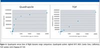 The following capabilities of TOF and quadrupole mass analyzers will be compared in more detail throughout this article: acquisition rates, spectral continuity, deconvolution capability, and quantitative abilities.