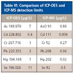 Table VI: Comparison of ICP-OES and ICP-MS detection limits