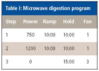 Table I: Microwave digestion program