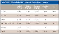 Table VIII: ICP-MS results for NIST 1548a typical diet reference material