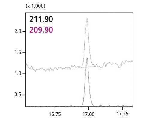 Figure 2: SIM chromatogram of trichloroanisole (TCA) in wine obtained using headspace trap GC (wine spiked with 1 ng/L TCA).