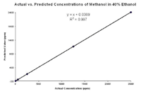 An affordable, high sensitivity ProRaman instrument was used with PLS method to successfully analyze low concentration methanol in 40% alcohol. Based on our findings, the detection limit for methanol in 40% of ethanol is much better than 50 ppm and reliable quantitative determination using PLS prediction could reach 50 ppm of methanol in 40% alcohol.