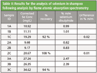 Table II: Results for the analysis of selenium in shampoo following analysis by flame atomic absorption spectrometry