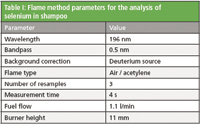 Table I: Flame method parameters for the analysis of selenium in shampoo