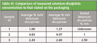 Table III: Comparison of measured selenium disulphide concentration to that stated on the packaging