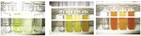 A positive indication for the presence of selenium was identified by a yellow/orange color, which darkens rapidly on standing. This is shown in Figure 1. The solution on the left of each picture is the control (blank) sample followed by 3 samples of anti-dandruff shampoo known to contain selenium.