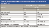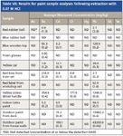 Table VI: Results for paint sample analyses following extraction with 4% acetic acid