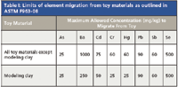 Table I: Limits of element migration from toy materials as outlined in ASTM F963-08