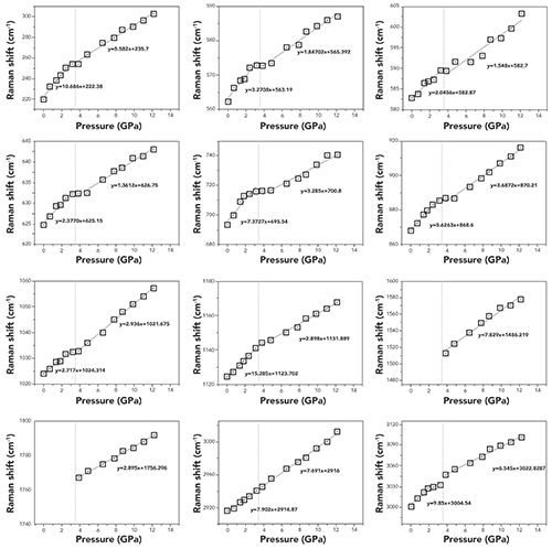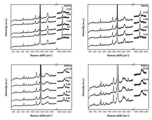 In the past two decades, high-pressure in situ Raman spectroscopy, using diamond anvil cell technology, has become one of the important means to study molecular structure and properties under high pressure (14–20). We can study the changes in material structure and electron orbital changes through Raman spectroscopy (21–26).