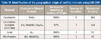 Table IV: Identification of the geographical origin of conflict minerals using LIBS (29)