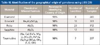 Table III: Identification of the geographical origin of gemstones using LIBS (29)
