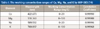 Table I: The working concentration ranges of Ca, Mg, Na, and K by MIP-OES (14)