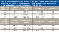 Table II: The analysis and percent recovery of Mg, Na, K, and Ca in a certified reference apple and grapefruit juice by MIP-OES. (Note: Both fruit juices were certified by the Food and Environmental Food Agency, York, UK) (14).