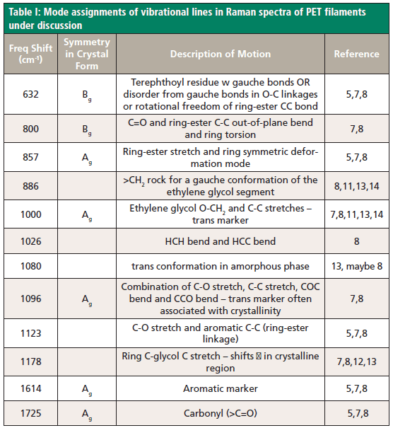 Numerous authors have performed normal modes analysis of PET on which we will rely. The earliest ones were published starting in the early 1970s (3,5,6,7,8 and 10).