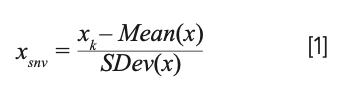 Where xk is the raw values of data x, Mean(x) is mean values of data x, SDev(x) is the standard deviation of data x.