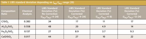 The results for C/SiO2, Al2O3/SiO2, Fe2O3/SiO2, and CaO/SiO2 are summarized in Table I. The correction results for IMg1/IMg2: 4–8 are more accurate than those for IMg1/IMg2: 4–24 and IMg1/IMg2: 12–24, which means the limitation of LTE assumption. It is important to set the measurement condition within an appropriate IMg1/IMg2 range. The cause of the fluctuation in the temperature correction results is also attributed to the sample uniformity, because the fly ash contents are not uniform in the microscopic sense. With the temperature correction, unburned carbon in fly ash can be evaluated down to less than 1% (15), which can satisfy the requirements in most pulverized coal fired boilers. This method is made workable and satisfactory for practical applications by choosing the appropriate plasma temperature correction range.