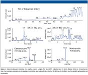 While advancements in LC–MS-MS technology, including hybrid systems like triple-quadrupole linear ion trap and quadrupole TOF, now provide the ability to perform GUS on a routine basis, there are a number of tradeoffs that need to be considered when moving from a targeted to a nontargeted workflow. Because the GUS workflow does not use a target analyte list, compound detection is not based upon any a priori knowledge, including retention times and information on molecular and fragment ion. As such, the GUS workflow is less selective, making it impossible to detect compounds at concentrations as low as they can be detected using MTS. In addition, full-scan MS experiments used in a GUS workflow produce chromatograms very rich in information. The chromatograms obtained commonly contain thousands of ions from both compounds present in the sample as well as from the sample matrix itself. While the use of high resolution often is used to enhance selectivity by reducing interferences, the benefit of doing so is sample-dependent. Thus, powerful software tools are needed to explore the GUS data generated to find unknown compounds. This article, which is based upon the use of propreitary technology, contrasts MTS with GUS and illustrates the use of nontargeted peak-finding algorithms and statistical data analysis to find relevant information in complex samples followed by compound identification based upon MS-MS library searching.