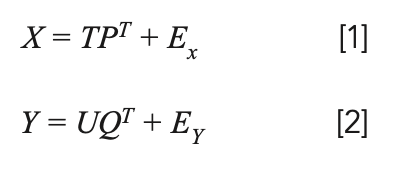 In the formula, T and U mean the score matrices of X and Y. P and Q denote the load matrices of X and Y. EX and EY represent the PLS fitting residual matrices of X and Y. The superscript T denotes the matrix transposition. The linear regression relationship between T and U (U = T * B) can be established from equation [1] and [2]; specifically, B = (TTT)-1TTY. For the prediction of unknown samples, the score matrix Tpre of the spectra array of the samples is calculated first. Then, the concentration is figured out according to the formula Ypre = TpreBQ (22).