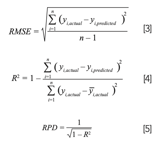 In the formula, n denotes the sample size; yi,actual means the actual measured value of sample i. yi,predicted means the predicted value of sample i based on the regression model.