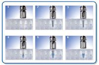 Implementation of the off-line method requires that the LC platform be equipped with a programmable fraction collection system capable of precisely and reproducibly dividing the SCX eluent into timed small volume aliquots. A micro-fraction collector is used for this purpose (2). It enables fraction collection based upon peak detection or time slices and is equipped with Peltier cooling to prevent thermal decomposition and evaporation of microscale fractions — an important consideration with very small volumes. To ensure reproducible collection, a new dispensing principle is utilized: the tip of the capillary moves upward continuously so that it remains in contact with the liquid surface as each well fills. This enables a sharp cutoff of the dispensing process and prevents both the formation of air bubbles in the collection wells and crosscontamination between successive fractions. (Figure 3).