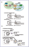 Figure 1 depicts the components of a typical instrument system that can be employed for both on-line and off-line 2-D LC. To integrate the complex arrangement of LC flow pathways within a reasonably compact footprint, these instruments utilize programmable systems of valves to switch between chromatographic dimensions, as well as between the various phases of a particular separation (e.g., column equilibration, back flushing, column loading, chromatography, etc.). At nanoscale volumes, it is crucial that these valves (as well as other flow containing components and connections of the system) have the smallest possible internal volumes so as to minimize peak broadening. This constraint is critical when analytes of interest are present at concentrations near or at the method's limit of detection and peak broadening could cause analyte concentrations to fall below the detection threshold. Figures 2a and 2b illustrate an off-line and an on-line LC system, respectively, that incorporates two two-position/six-port microvalves to control system flows.
