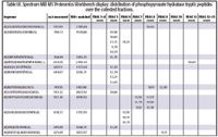 Table III. Spectrum Mill MS Proteomics Workbench display: distribution of phosphopyruvate hydratase tryptic peptides over the collected fractions.
