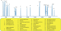 Both of these preconfigured systems can resolve the 29 compounds on the NOAA list, with run times under 20 min, as shown on the mass-selective detector system in Figure 2. Note that optimal PAH analyses are run at high temperatures, and in this case the inlet temperature is at 320 °C, the detector transfer line is at 320 °C, the detector source is at 350 °C ( to minimize tailing), and the MS quadrupole is at 200 °C. Backflushing enables analysis of all 29 PAHs in 18 min, plus a 4-min backflush, versus a 53-min run time (excluding necessary bake out time) with the NOAA method.