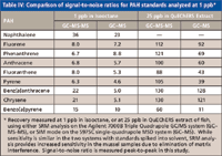 Table IV: Comparison of signal-to-noise ratios for PAH standards analyzed at 1 ppb*