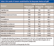 Table I: FDA Levels of Concern established for the Deepwater Horizon oil spill