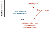 Figure 2: The small peak or line one unit to the right of the main or molecular ion peak is called the M+1 peak.
