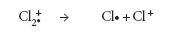 But chlorine consists of molecules, not individual atoms. When it is ionized by EI, an electron is knocked off the molecule to give a molecular ion, Cl2+. These molecular ions are not particularly stable; some fragment to give a chlorine radical and a Cl+ ion.