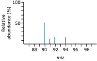 The number of isotopes: The five peaks in the mass spectrum show five isotopes of zirconium (Figure 4), with relative isotopic masses of 90, 91, 92, 94, and 96 on the 12C scale, the relative abundances are given as percentages.