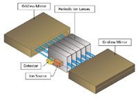 In one of the most recent advances in TOF-MS, Verentchikov and colleagues (14,15) have introduced the multireflecting time-of-flight analyzer that uses a Folded Flight Path (FFP). This is depicted in Figure 1, which shows how the ions effectively pass between each of two planar ion mirrors and through an Einzel lens array. A major challenge in the multireflecting systems is poor transmission because of defocusing of ion trajectories. In the FFP configuration, transmission is improved by using nonlinear electrostatic fields in the gridless mirrors. The ions are constantly refocused as they traverse the flight path and create the extended flight path needed to enhance the resolution. The gridless design minimizes ion loss during the flight. The mass analyzer offers three effective flight paths of approximately 2-, 20-, and 40- m lengths with operations in the same planar flight "tube." These operational options are depicted in Figure 2. The number of passes or reflections determines the effective pathlength, and by inference, the available resolving power. The performance capabilities of this system are provided in Table I.