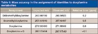 Table II: Mass accuracy in the assignment of identities to doxylamine metabolites