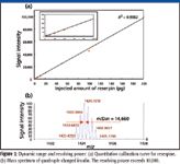 Figure 2a shows a typical quantitative dynamic range of the mass spectrometer for reserpine. It shows a linear dynamic range of more than four orders of magnitude, spanning from 10 fg to 200 pg, for which the orthogonal arrangement of the TOF analyzer and the ADC data-acquisition electronics contribute considerably.