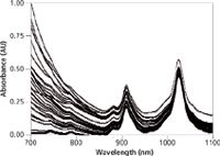 Calibration transfer is a technique for transferring a NIR calibration model from a reference analytical instrument to a target analytical instrument that may be a different instrument, or the same instrument at a later time (4,5). Piecewise direct standardization (PDS) is a general and successful model-transfer algorithm; it can select the optimized window width of the spectral range for correction (6). However, the PDS algorithm is only dependent on a fixed-size window width in the entire spectral range, and there are too many transfer data variables. Consequently, the precision of calibration transfer needs to be further improved.