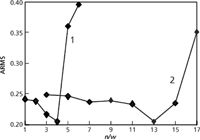 Figure 5: Changes of ARMS with decomposed level n (plot 1) and window width w (plot 2) in WMPDS algorithm.