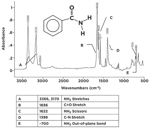 The infrared spectrum of a primary amide, benzamide, is seen in Figure 3.