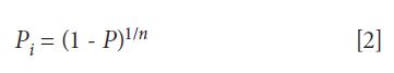 where Pi is the probability of any individual reading being within the allowed limits (generally 0.95), P is the actual probability that any reading from the set is outside the limit, and n is the number of readings (or data points).