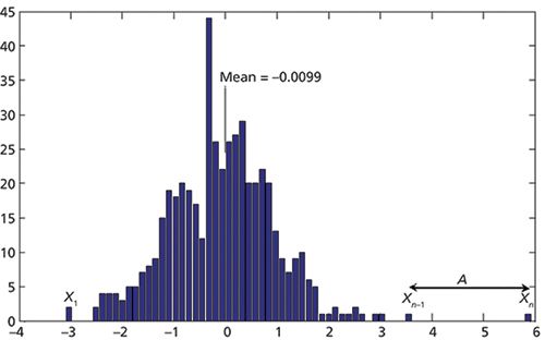 The first part of this column, up to this point, has essentially been a warning against overzealous application of simplistic considerations, creating the danger of making what statisticians call the type 2 error: falsely identifying outliers when none exist. So then, how can we detect an outlier? Books such as the one we referenced previously (3) provide several approaches to solving this problem. Not surprisingly, they use methods other than simply counting standard deviations from the mean. Barnett and colleagues (3) also make it clear that the existence of an outlier also depends very much on the distribution of the data that the suspected outlier is supposed to fit. Our examples in Figures 1–3 are predicated on the reference distribution being the normal distribution.
