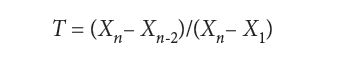 1. T = (Xn– Xn-1)/(Xn– X2) (6). This test compares the distance of the suspected outlier from the next-highest value, to the range of the sample data. Note that the first sample is not included in the range to avoid the possibility that it is also an outlier, which would then give an incorrect threshold test value.