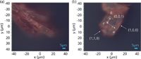 Figure 7: Reflected light images of rubrene grains (a) R_1 and (b) R_3.