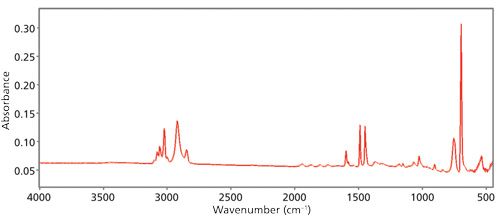 Figure 2: An example of a good IR spectrum. It has low noise, little baseline offset, a flat baseline, the peaks are on scale, and it is free of spectral artifacts.