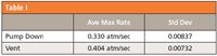 The same calculations from Figures 2 and 3 were done for 500 cycles. Table I shows the mean and standard deviation of 500 cycles for both pump down and vent rates.