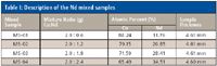 A measurement for the lanthanide sample was carried out on Nd and Sm before a measurement of the actinium elements from a standpoint of the IAEA safeguards. Four ingot samples that had mutually different components were prepared in an arc melting furnace at 3000 °C starting with a homogeneously mixed powder form of Nd and Cu. Five ingot samples were created from the mixed powder of Sm and Cu using the same method. Here, Cu is the reference element for each mixed sample and it was composed at an equal quantity. All of the prepared Nd samples had a thickness of 4.61 mm, and Sm samples were prepared for a thickness of about 3.65 mm. Tables I and II show the component ratio of manufactured neodymium mixed samples and samarium mixed samples, respectively.