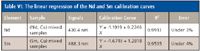 Table VI: The linear regression of the Nd and Sm calibration curves