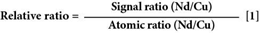 Each measurement was performed after 50 laser ablations under the same conditions and repeated 10 times. The integrity of the equipments was carried out through a calculated relative ratio (1), and the statistical data from the Nd mixed samples is shown in Table IV. Here, the mean is the statistical value of the relative ratio, and the measurement was satisfied with a normal distribution, since the p-value was 0.05 or more.